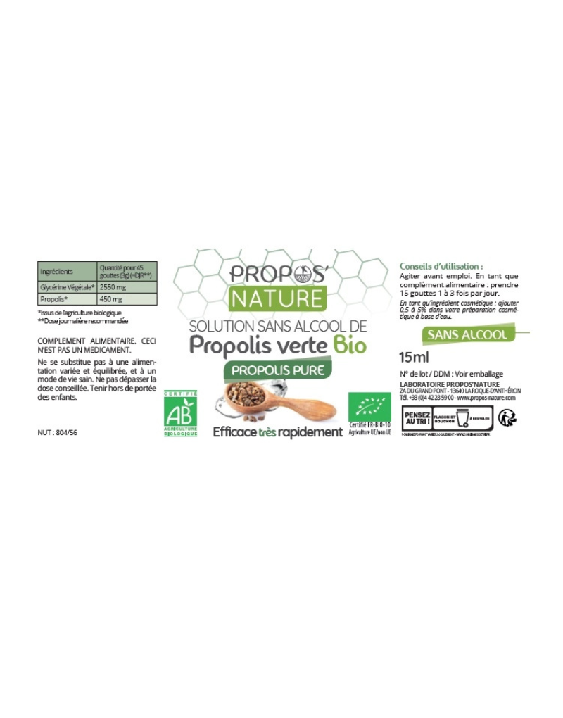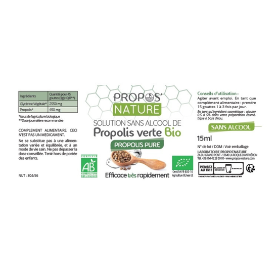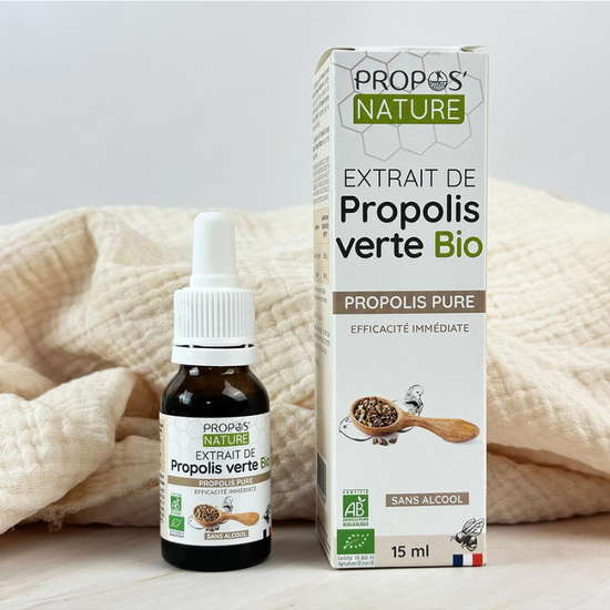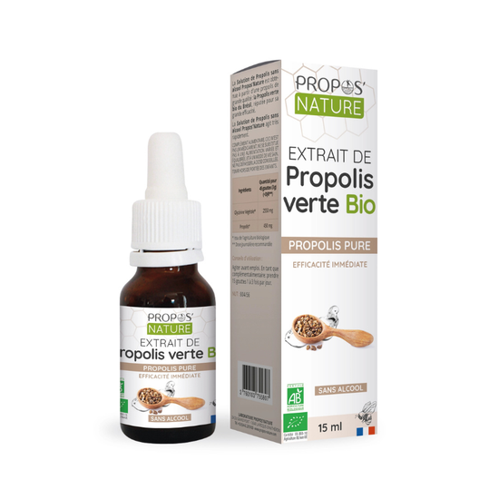 Propos'Nature Organic Green Propolis Extract is a 100% natural, alcohol-free solution, ideal for daily oral use.