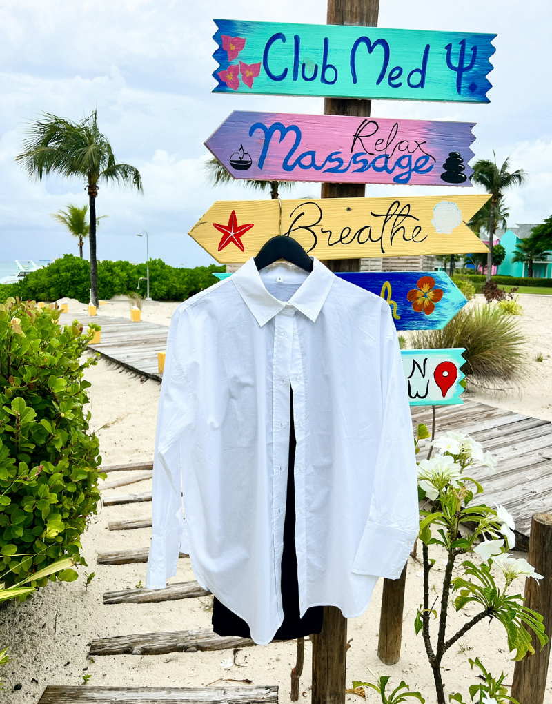 - Side slit de chaque côté : idéal pour nouer la chemise ou la rentrer dans un pantalon en toute élégance