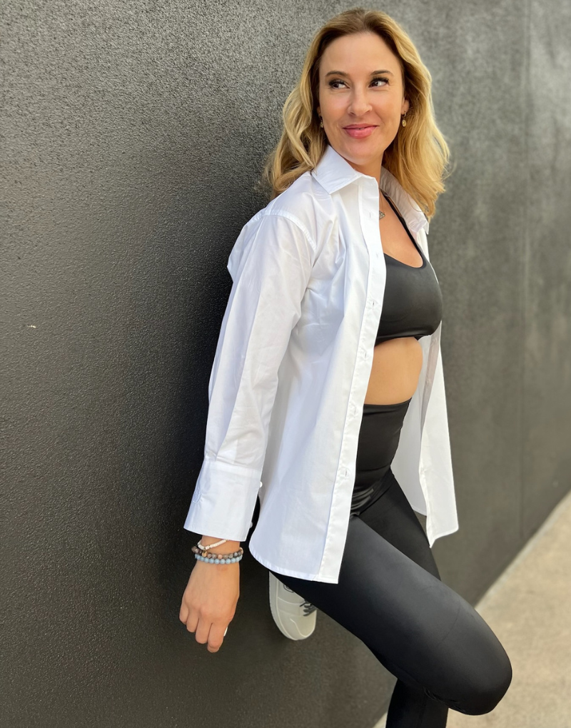 La chemise Serena, c'est le mix parfait entre style et confort, pensée pour s’adapter à nos vies dynamiques. Avec son coton upcyclé ultra doux et sa coupe classique élégante, elle nous suit partout : du cours de yoga à la sortie entre copines, en passant par le bureau. Elle va avec tout, tout le temps, tout en faisant un choix éco-responsable.