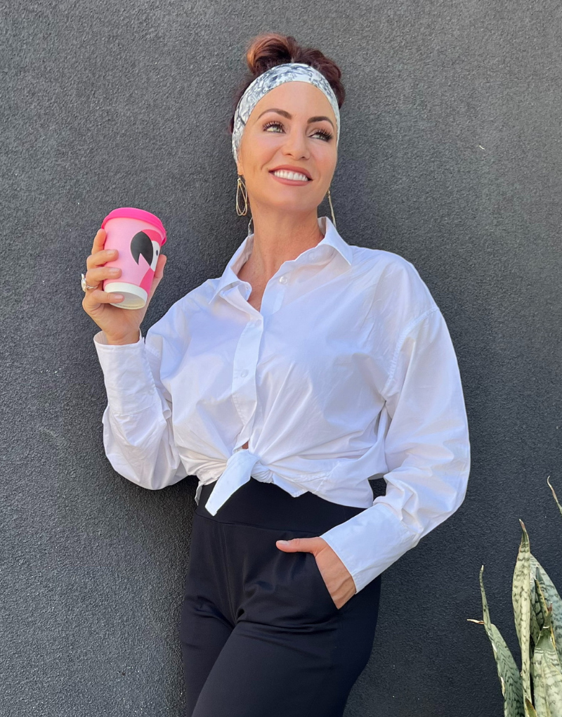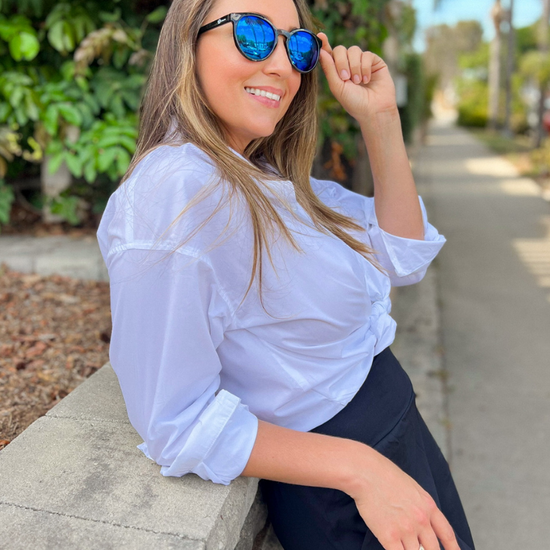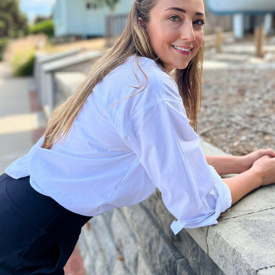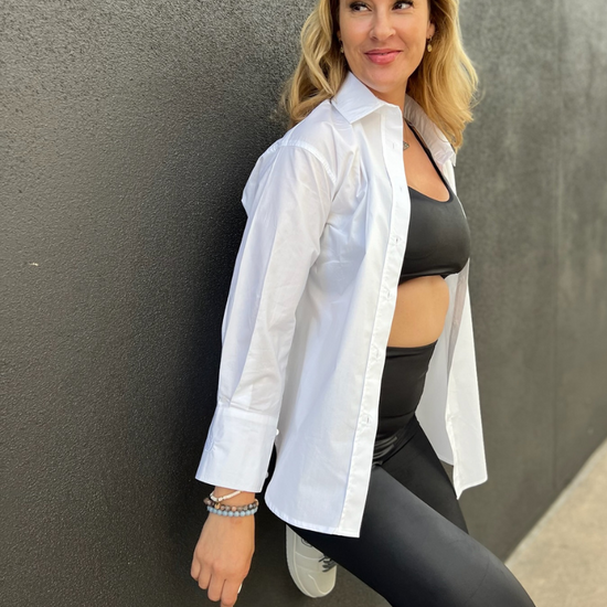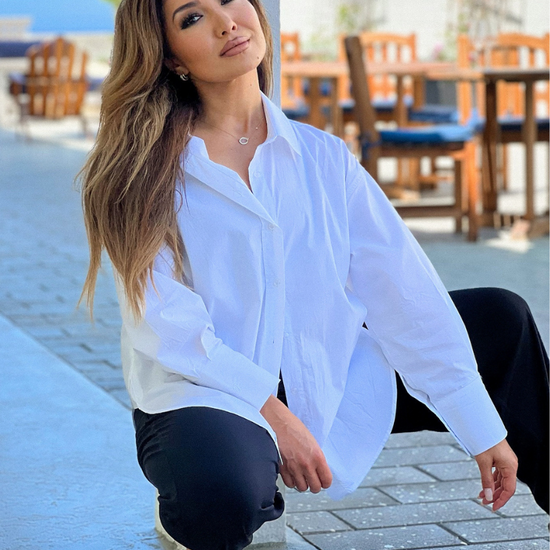 The Serena shirt is the perfect mix of style and comfort, designed to fit into our dynamic lives. With its ultra-soft upcycled cotton and elegant classic cut, it accompanies us everywhere: from yoga class to outings with friends, and even to the office. It goes with everything, all the time, while being an eco-friendly choice.
