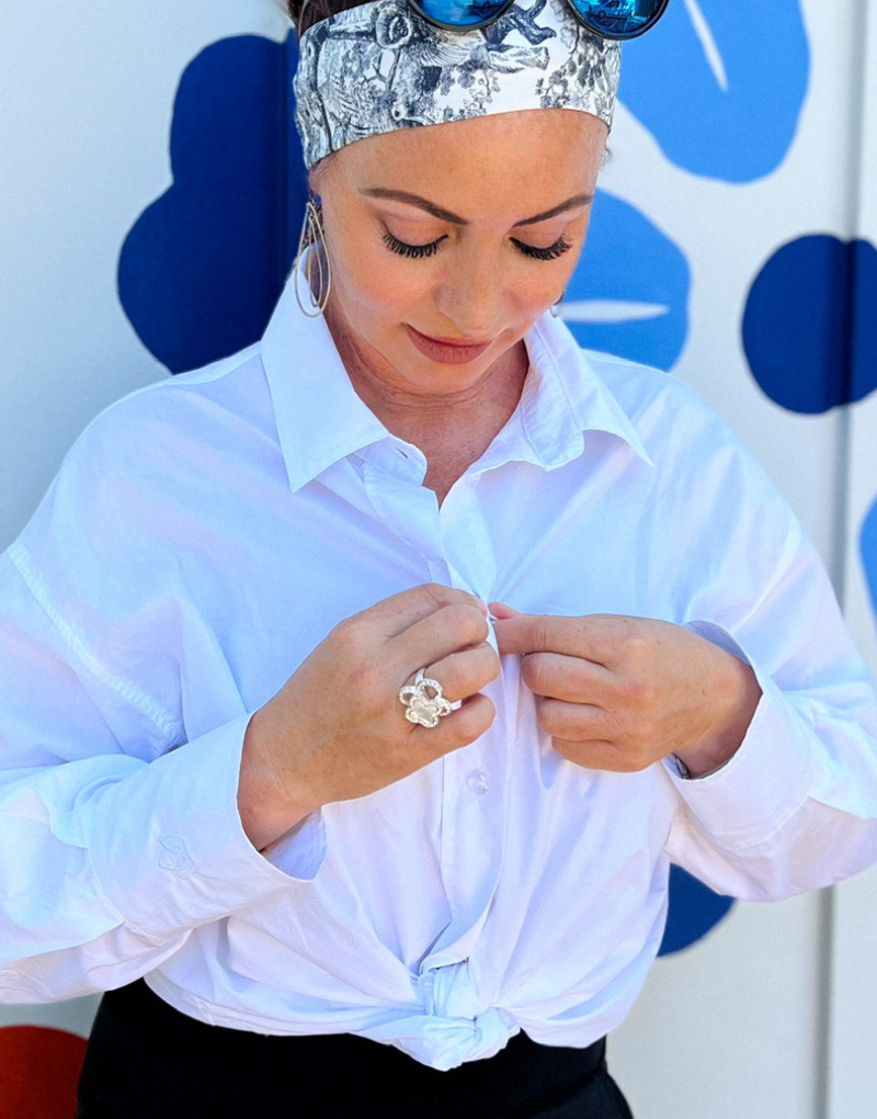- Side slits on both sides: perfect for tying the shirt or tucking it into pants with elegance